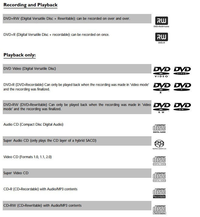 - Recordable Media Format: DVD+R, DVD+RW ONLY!