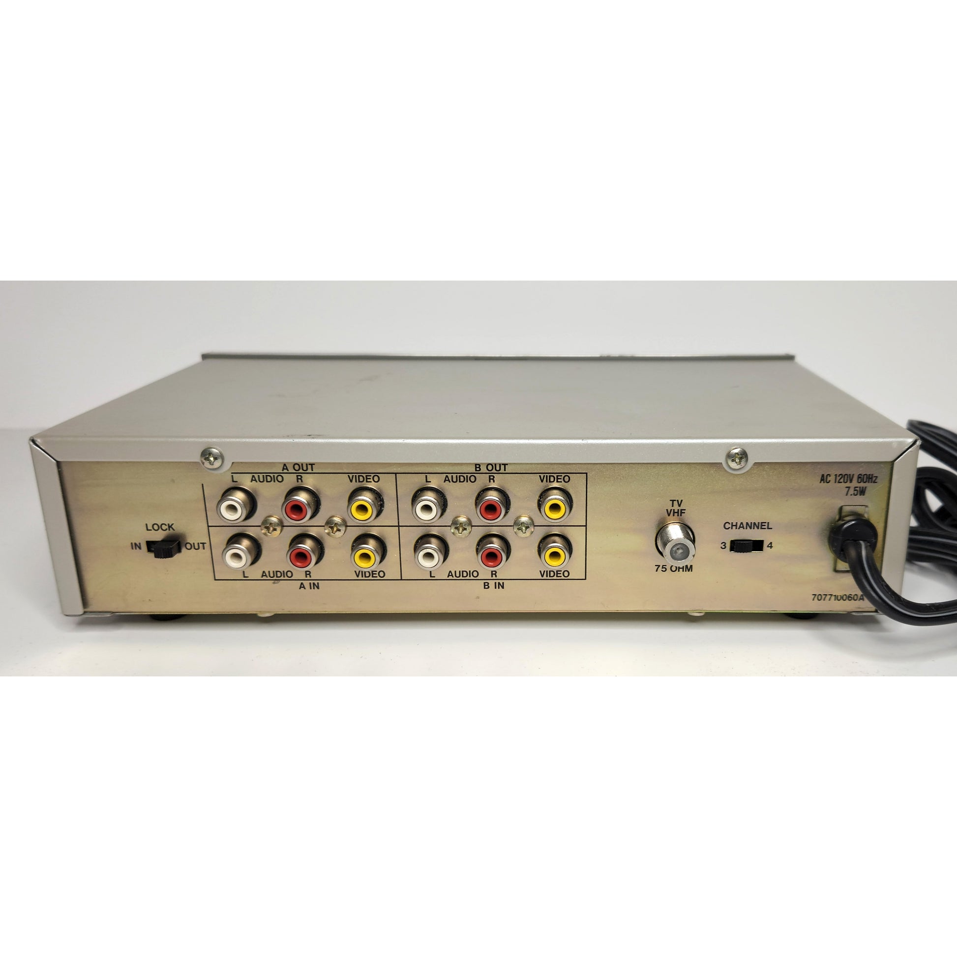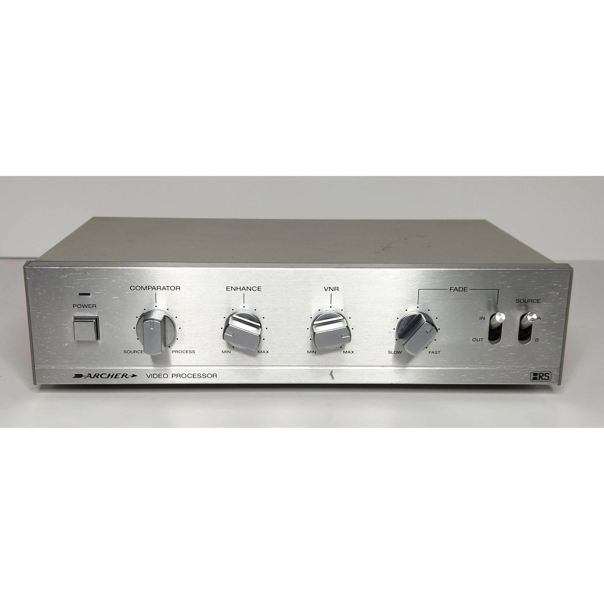 For enhancing picture details normally lost during duplication. Stabilizer eliminates roll and jitter. Video noise reducer cuts snow. Variable-speed audio/video fader control gives you pro-quality dubs. Has split-screen view of original and processed video. Also has an RF modulator with channel 3 or 4 switch (for old analog TVs only).