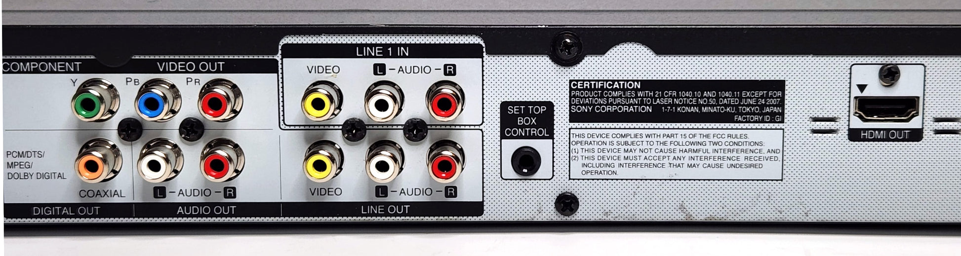 - Connectivity: HDMI (output only), Composite Video RCA, Digital Audio Coaxial RCA, Stereo Audio L/R RCA, S-Video, Component Video RCA, DVI (i.LINK, IEEE1394)